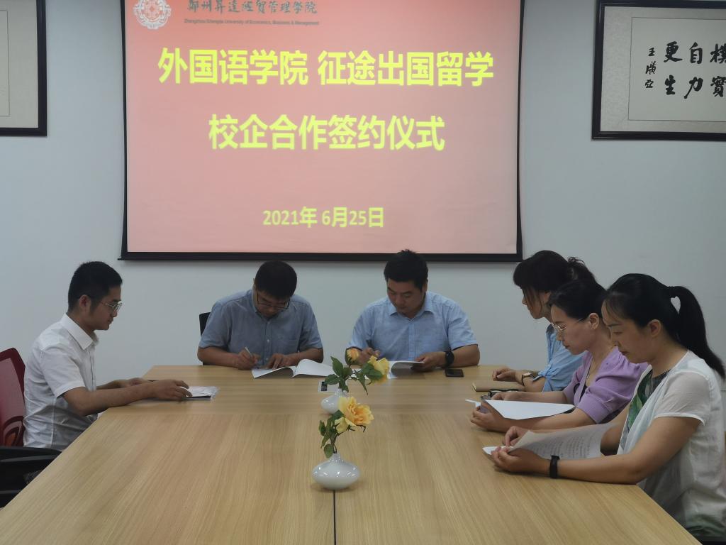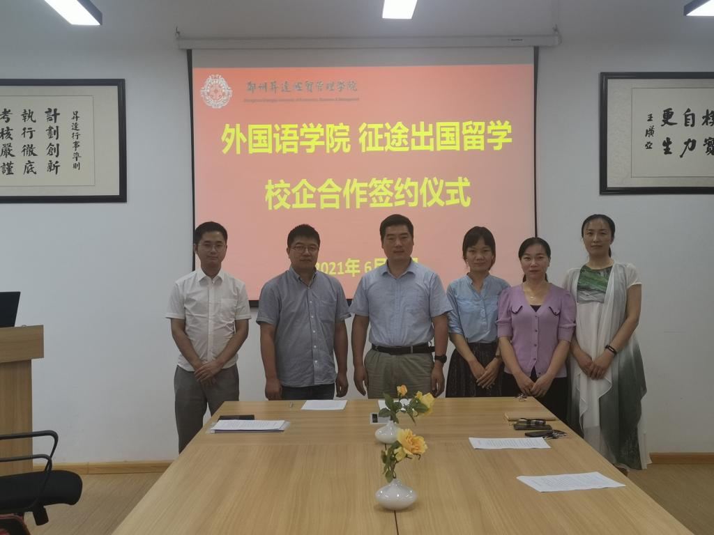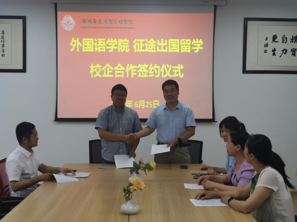 6月25日上午11:00,欧洲杯正规下单平台同河南征途出国留学服务有限公司在欧洲杯正规下单平台会议室举行就业基地签约仪式,欧洲杯正规下单平台党总支书记石皓召、河南征途出国留学服务有限公司总经理(我校98级校友)王宴会、欧洲杯正规下单平台日语教研室主任张峰,以及日语教研室的陈贺丽和洪艳荣老师教师参加了本次签约仪式。