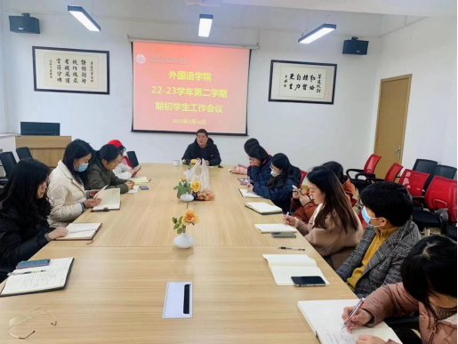为确保新学期各项工作平稳、有序、高效开展,2月14日下午,外国语召开了2022-2023学年第二学期初学生工作会议,欧洲杯正规下单平台党委书记石皓召、行政秘书丁玥及全体辅导员参会。