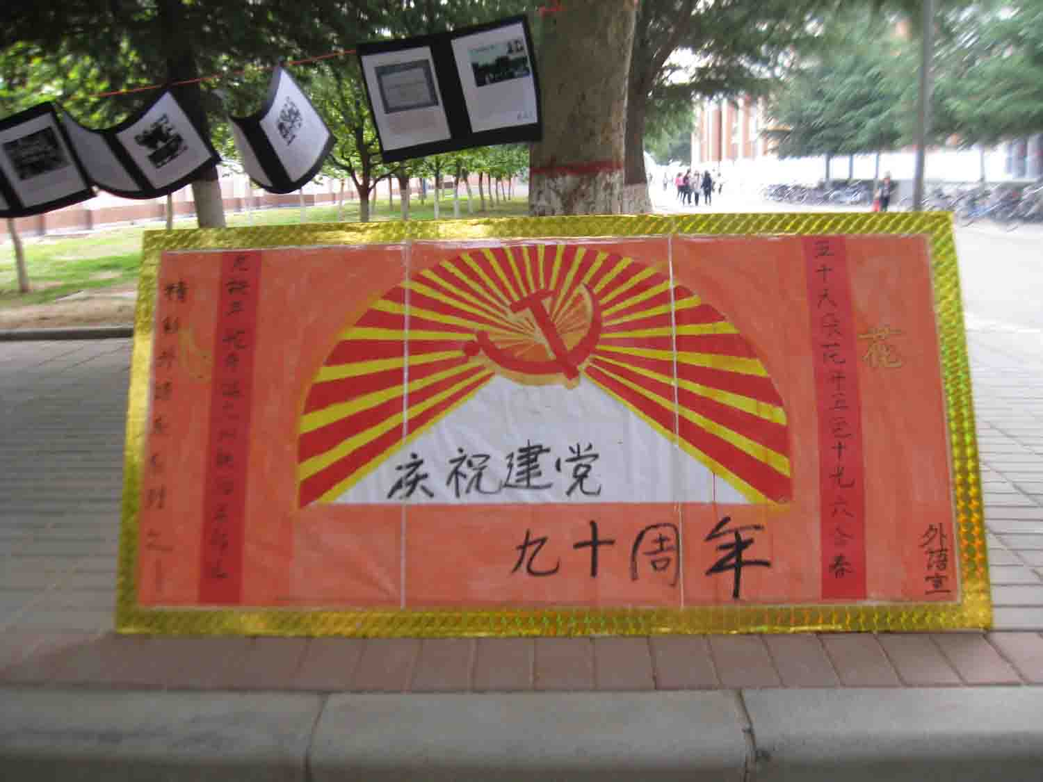 为庆祝建党90周年,回顾党的光荣历史,在外语系党总支统一部署下,外语系团委MMD部门协宣传部同学5月23日共同实施举办了“庆建党九十周年”图片展活动。图片在升达校园内展出。