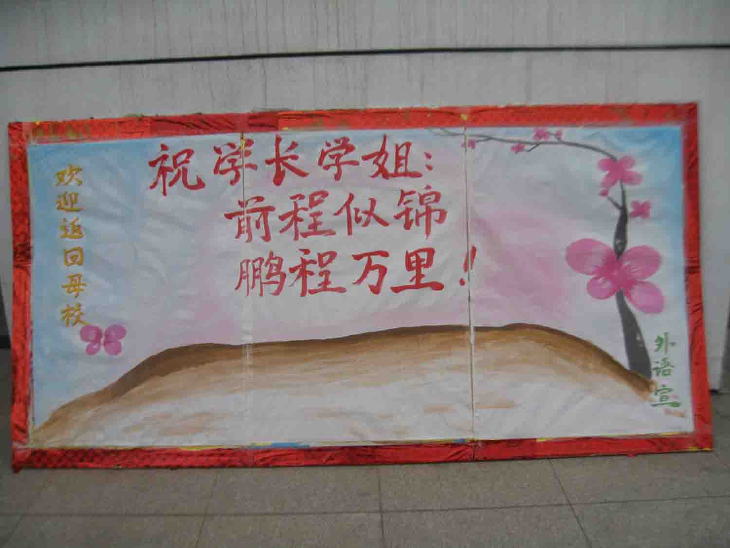 曾经的莘莘学子,四年寒暑,锐意进取、百炼成钢;几度春秋,蟾宫折桂、再创辉煌。今天,满怀着对毕业生的浓浓深情,外语系的学弟学妹们,用自己独特的方式传递着这份温暖与感动。