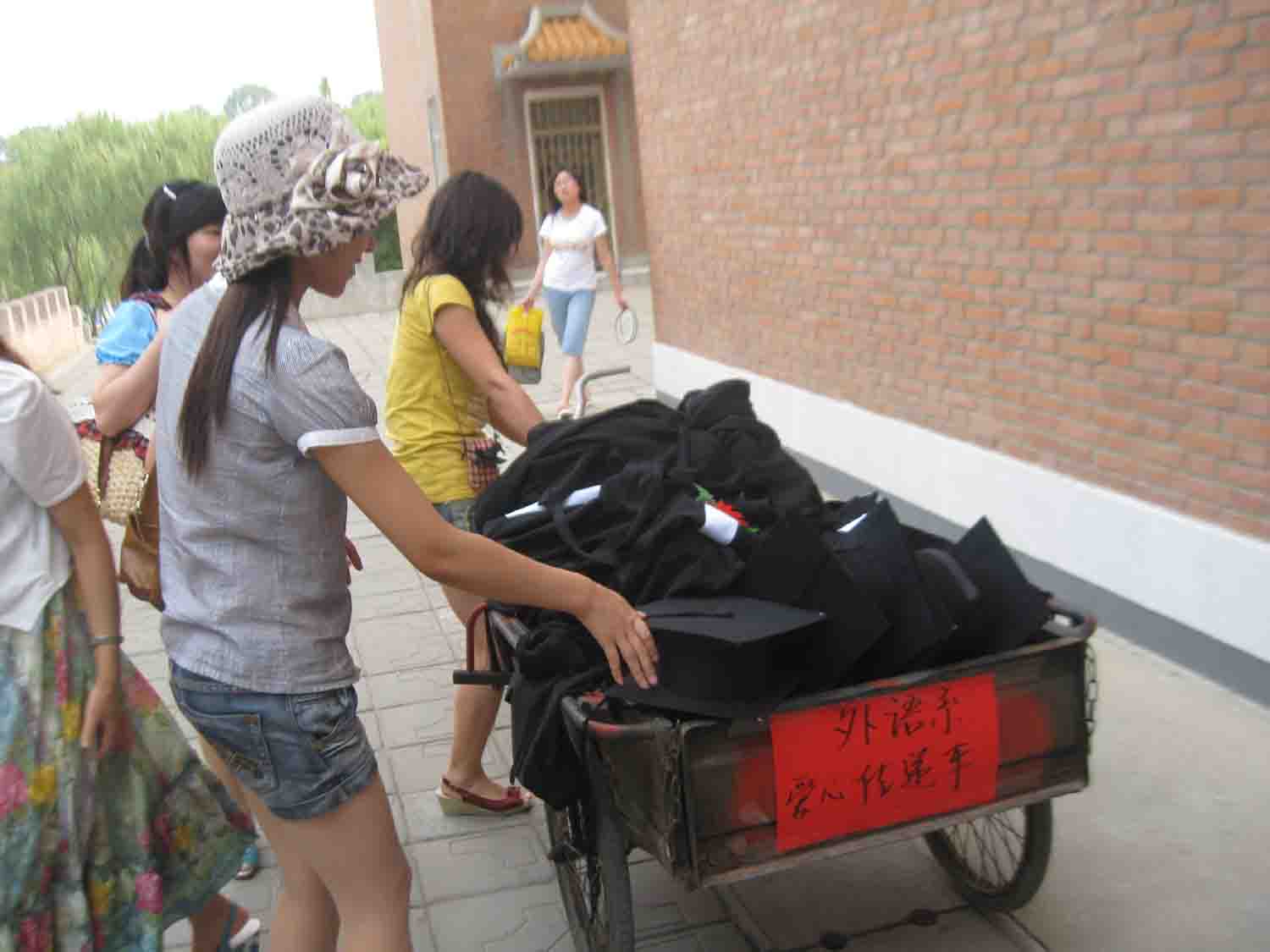 为了确保2011届毕业生的顺利离校,6月外语系特在十三、十六、二十号宿舍楼设立爱心服务站,为毕业生搬运行李提供方便。一辆辆爱心服务车承载着满满的依恋与不舍,也寄托着无限的憧憬与希望。载着一车的行李,一路上,大家与毕业生开怀畅谈,谈理想、谈未来,谈曾经的精彩与辉煌,谈曾经的失落与迷茫。天气虽然炎热,汗水也浸湿了衣衫,但大家仍然热情满怀、毫无倦意。他们渐行渐远的背影,装饰了升达园永远的留恋。同时,毕业生们也不忘为母校做贡献,他们主动捐出自己的衣物、书本、台灯等日常生活用品,当大家从他们手中接过物品的那一刻,心中的感激之情不言而喻。最后,毕业生们还纷纷在卡片上留下对母校的深情寄语。