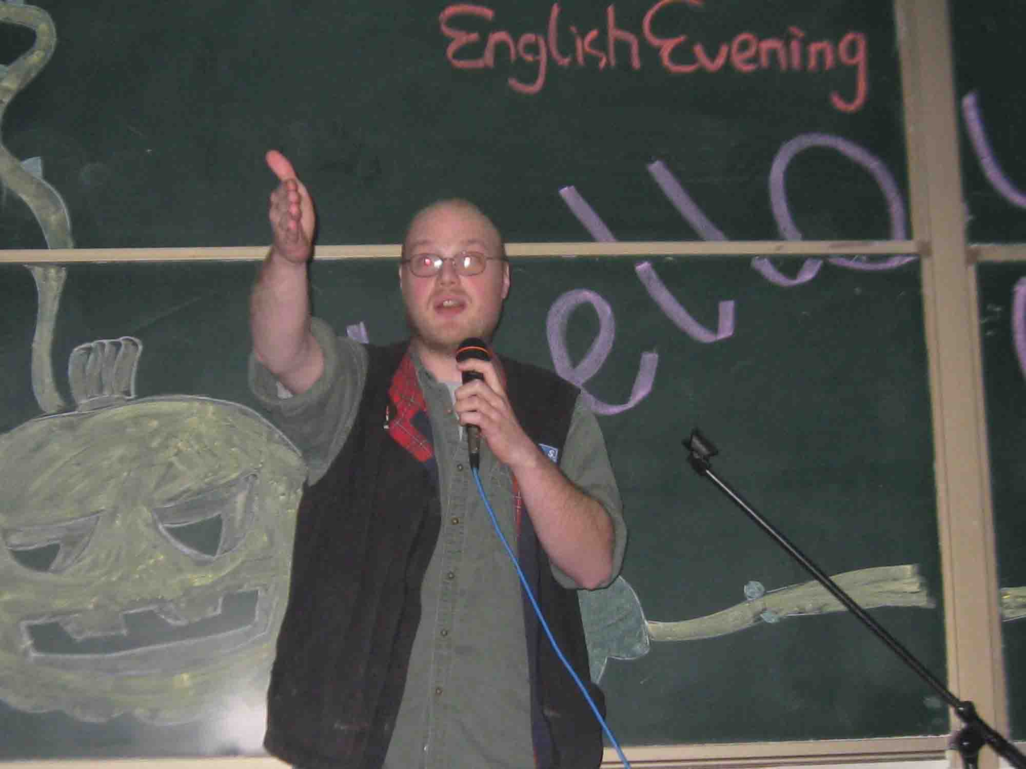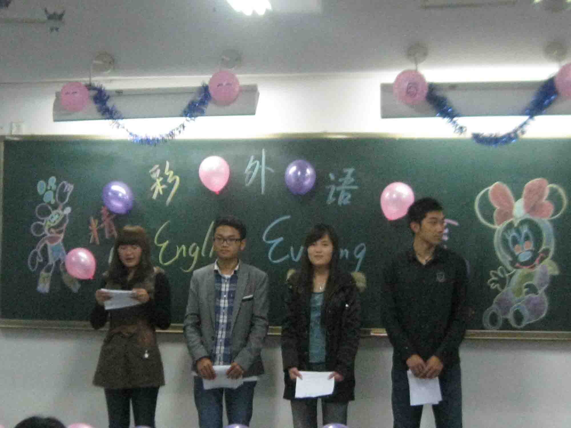 为增进英语专业学子对西方文化的进一步了解,11月1日晚,由外语系外交部主办的精彩外语系系列活动之English Evening第一场在外语楼101,412教室举行,11级第一团总支全体同学以及部分外教参加了本次晚会。