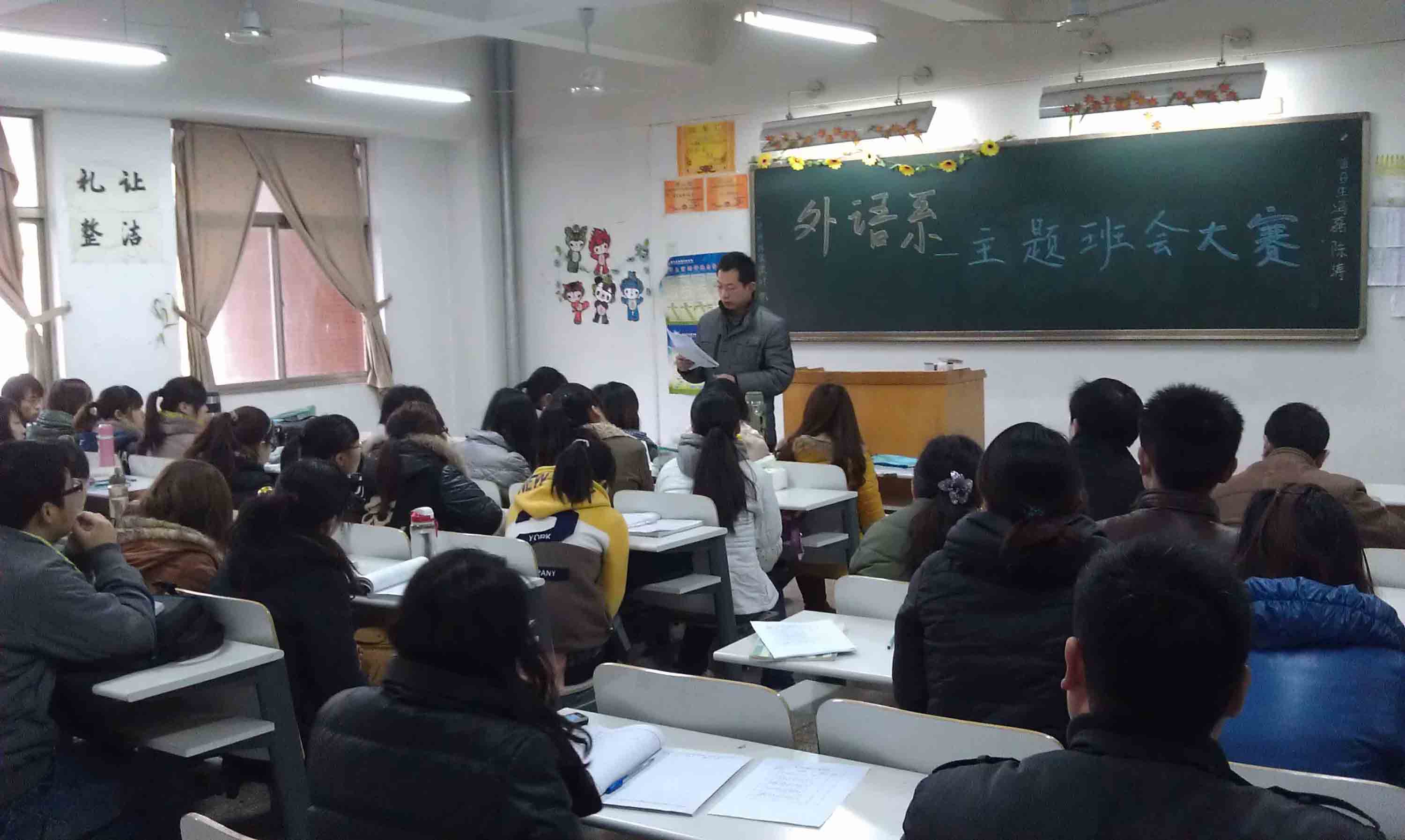 为检验和提升学生工作的品质,促进辅导员之间的交流和学习,深化学生素质教育队伍建设,按照学务处的工作部署,外语系在经过认真的筹备后,于2月28日上午顺利启动外语系辅导员主题班会大赛。外语系主任马秉义教授、系党总支书记乔卫、系党总支副书记石皓召、教学秘书王璨及外语系全体辅导员参加此次活动并担任评委。