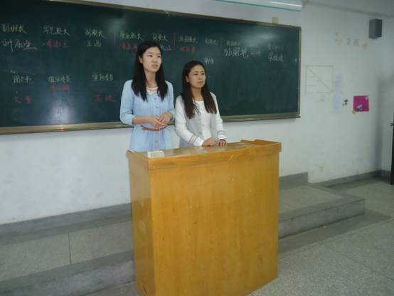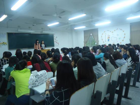 2014年9月28日下午2:30于外语楼A楼308,309召开优秀学生交流会。为使学生对大学生活有更生动的了解,外语系特从11级选取四名有代表性的优秀学生代表李辰、李芳华、夏先慧、娄雯雯分专业进班给大一新生做交流。
