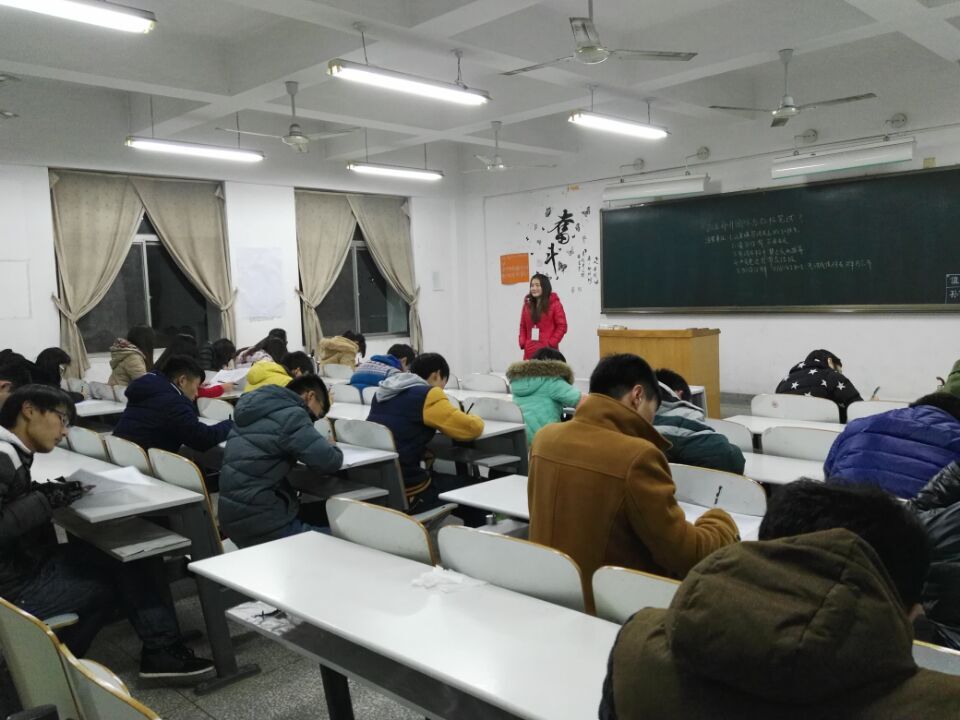 此次笔试从18:30开始,答题时间为100分钟,笔试教室主要分布在外语楼一楼、三楼和四楼。考试开始前,监考人员认真负责,将考生的座位安排到位,防止作弊。考试一开始,考场一片安静,气氛紧张。进到一半时,各个巡考人员开始巡视每个教室,详记考试人数,查看考场情况。到19:30,开始陆陆续续有同学交卷,监考员认真收卷,大概半个小时左右,各个考场试卷已交齐。20:00整,笔试顺利结束。